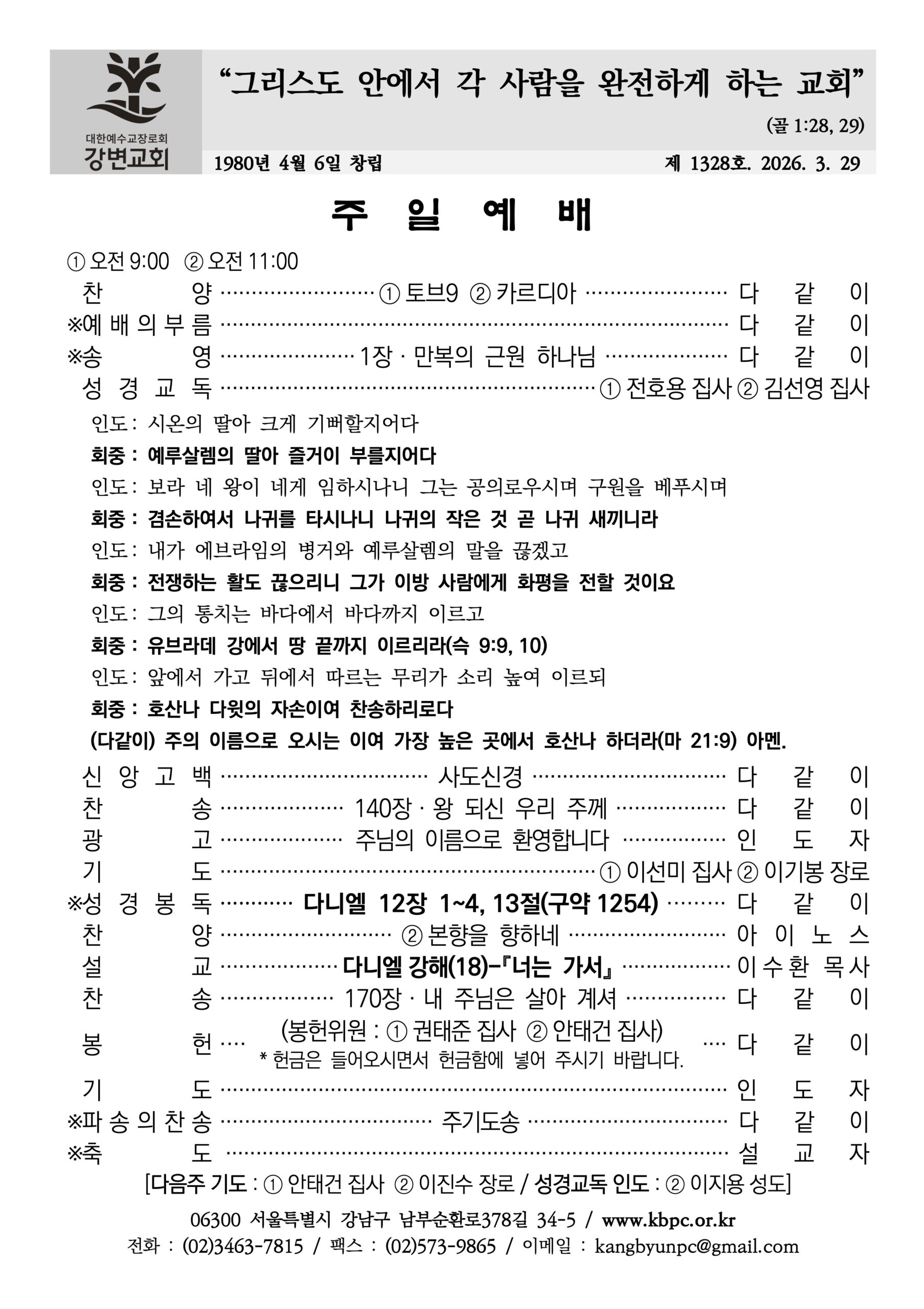 • 2026-3-29 주일예배(2부) 전체 영상 다니엘 12장 1~4, 13절 “너는 가서”
